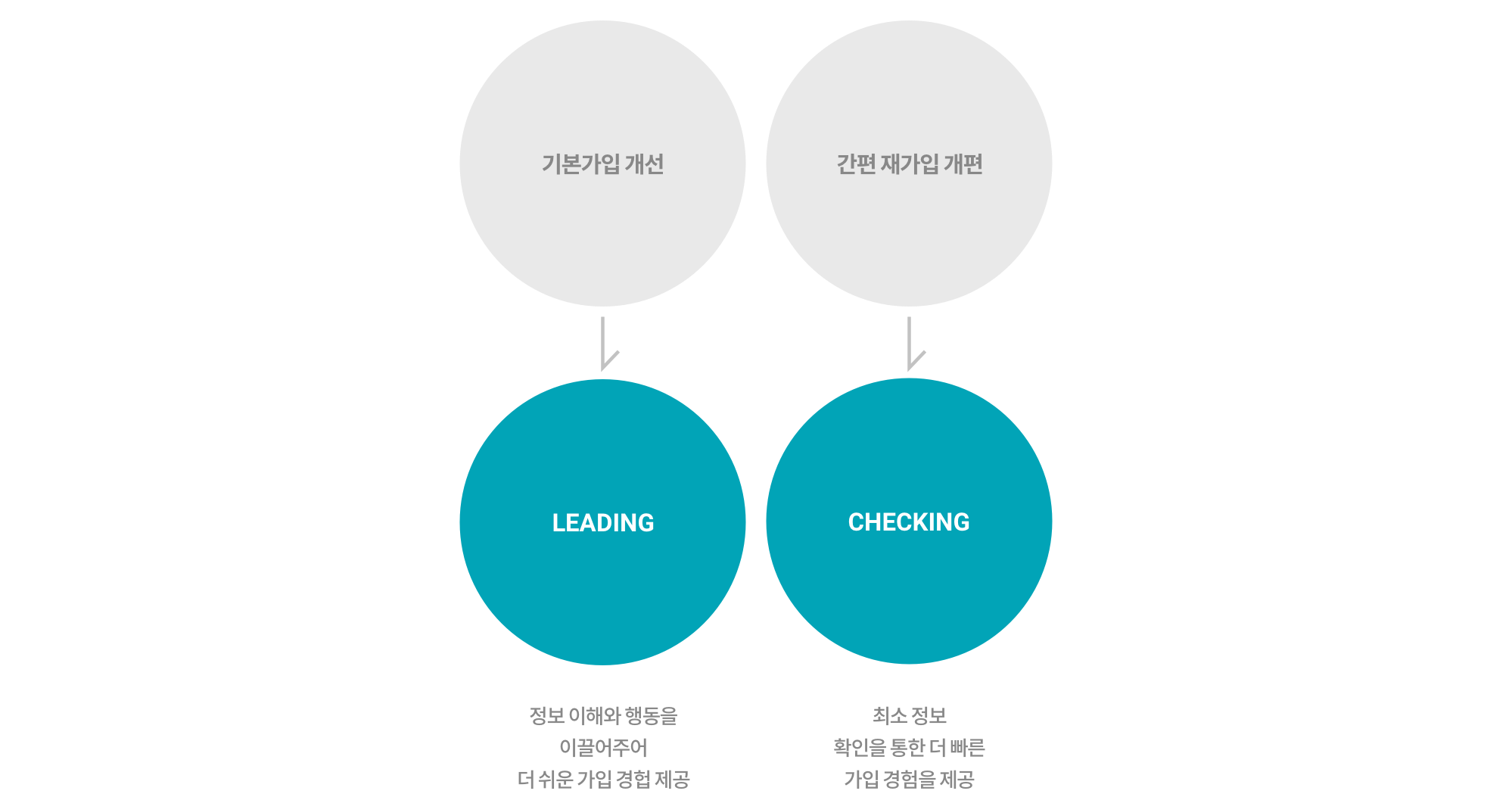 고객 인지의 흐름을 고려한 컨텐츠 및 기능을 배치하여 쉽고 빠른 보험 가입을 유도하고자 하였습니다.
